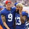 Odell Beckham Jr.'s ankle injury upsets Brad Wing, his best friend Giants wide receiver Odell Beckham Jr. talks on the sideline with punter Brad Wing against the Chargers at MetLife Stadium on Oct. 8, 2017.