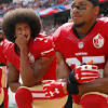 Colin Kaepernick visits Alcatraz to support a Native American protest From left to right, San Francisco 49ers' Eli Harold (58), San Francisco 49ers quarterback Colin Kaepernick (7) and San Francisco 49ers' Eric Reid (35) kneel during the national anthem before their NFL game against the Dallas Cowboys at Levi's Stadium ...
