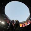 Falcons expect roof fixes ready for '18 FILE - In this Sept. 17, 2017, file photo, NFL Commissioner Roger Goodell, left, speaks with Atlanta Falcons owner Arthur Blank under the open roof, before an NFL football game between the Falcons and the Green Bay Packers in Atlanta.