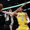Lakers defeat short-handed Spurs for their third straight victory The Lakers' Brandon Ingram, left, drives past the Spurs' Pau Gasol during the first half of Thursday's game at Staples Center.