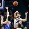 TV Take: Gonzaga overpowers BYU, thrills ESPN crew again Gonzaga forward Killian Tillie rejects a shot by BYU forward Payton Dastrup, Tuesday, March 6, 2018, at the Orleans Arena in Las Vegas.