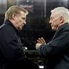 Jerry Jones looking forward to Monday meeting with Roger Goodell FILE - In this Nov. 9, 2014, file photo, NFL commissioner Roger Goodell, left, and Dallas Cowboys owner Jerry Jones talk during an NFL football game between the Jacksonville Jaguars and Dallas Cowboys at Wembley Stadium in London.