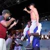 Shaq and Gronk get down in the great dance off Rob Gronkowski gets lifted up on top of Shaquille O'Neal at Shaq's Fun House event in Miami. Placeholder image. Rob Gronkowski gets lifted up on top of Shaquille O'Neal at Shaq's Fun House.