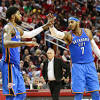Westbrook and George help Thunder over Rockets 108-102 HOUSTON (AP) - Russell Westbrook and Paul George each scored 24 points, and the Oklahoma City Thunder used a timely fourth-quarter run to pull away for a 108-102 win over the Houston Rockets on Saturday night.