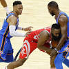 Westbrook's stellar fourth-quarter defense on Harden fuels Thunder past Rockets Russell Westbrook knocks the ball out of bounds and then steals it from James Harden in the 4th quarter. (0:41). Facebook · Twitter · Facebook Messenger · Email; comment.