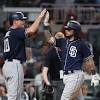 Renfroe hits go-ahead single, Galvis goes 5-for-5 as Padres defeat Braves ATLANTA (AP) - Hunter Renfroe hit a go-ahead, two-run single in San Diego's five-run seventh inning, Freddy Galvis had a three-run homer and went 5 for 5, and the Padres beat the Atlanta Braves 9-3 on Friday night.