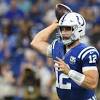 NFL roundup: Luck shows improvement in Colts win Colts quarterback Andrew Luck, who didn't play last season because of a shoulder injury, played most of the first half on Saturday night, completing 8 of 10 passes for 90 yards, including a 15-yard touchdown pass to tight end Eric Ebron, in a 23-17 win ...