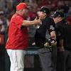 Ejections follow series of hit batters in Angels-Astros game ANAHEIM - After he'd been ejected in a game in which Angels' pitchers hit two batters and the Astros hit one, what Mike Scioscia wouldn't say was instructive.