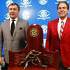 Alabama and Georgia set for inevitable title game ATLANTA • Nick Saban and Kirby Smart posed stiffly behind the trophy, forcing smiles for the cameras. Saban whispered something in his former assistant's ear, drawing a bit of a chuckle.