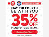 Star Wars Day May the 4th Deals & Freebies 2019 TODAY TODAY is Star Wars Day (also known as May the Fourth) and there are some super Star Wars themed restaurant & retail deals from Pizza Hut (35% off), Cicis, Potbelly Sandwich Shop, Build-A-Bear (up to 50% off Star Wars bears), Kohl's (up to 80% off Star ...