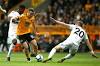 Europa League in sight for Wolves after beating Fulham 1-0 Fulham's Ryan Sessegnon, left, and Wolverhampton Wanderers' Diogo Jota battle for the ball during the English Premier League soccer match at Molineux, Wolverhampton, England, Saturday May 4, 2019. PA via AP Nick Potts. WOLVERHAMPTON, England.