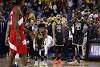 It's The End Of A Golden Era, But Not Necessarily The End Of The Warriors' Dynasty OAKLAND, CALIFORNIA - JUNE 13: Quinn Cook #4, Stephen Curry #30 and Draymond Green #23 of the Golden State Warriors react late in the game against the Toronto Raptors during Game Six of the 2019 NBA Finals at ORACLE Arena on June 13, 2019 ...