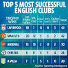Liverpool tie Man Utd on 42 trophies after Champions League win… as Spurs' wait for silverware reaches 4118 days STRIFE begins at 42 for Liverpool and Manchester United. Saturday's 2-0 win over Spurs in the Champions League final put Liverpool level with their biggest rivals - traditionally - at the top of the trophy-winning tree for English clubs. 3. Liverpool hail their sixth ...