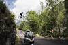 Top mountain bike jumps in Tour de France history On stage 10 of the 2019 Tour de France, in what is becoming something of a tradition, a mountain biker jumped over the peloton. Some people think this stunt is an accident waiting to happen, that it's highly irresponsible. Others think it's inspirational.