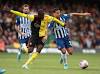 (Reuters) - WATFORD 0 BRIGHTON & HOVE ALBION 3. Soccer Football - Premier League - Watford v Brighton & Hove Albion - Vicarage Road, Watford, Britain - August 10, 2019 Watford's Abdoulaye Doucoure in action with Brighton and Hove Albion's Martin ...