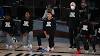 NBA players take a knee in protest of racial inequality during national anthem As the Compton Kidz Club sang the final stanza of the Star Spangled Banner, LeBron James, kneeling, unlocked his arm from Quinn Cook's and raised his right fist into the air. When the song ended, he pounded on his chest three times before pointing ...