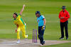 Starc rocks England with two wickets from first two balls Australia's fast bowler Mitchell Starc (L) runs in to bowl as England's batsman Jonny Bairstow (C) looks on during the one-day international (ODI) cricket match between England and Australia at Old Trafford in Manchester. Australia's Mitchell Starc stunned ...