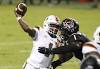 It took fourth quarter fireworks under Friday night lights, but the Hurricanes stole a win Quarterback D'Eriq King (1) passes as N.C. State linebacker Isaiah Moore (1) pressures him during the second half of Miami's 44-41 victory over N.C. State at Carter-Finley Stadium in Raleigh, North Carolina on Friday, Nov. 6. Photo credit: Ethan ...