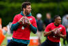 Fields already impressing his new Chicago Bears teammates Chicago Bears quarterback Justin Fields, left, hands off the ball to running back Artavis Pierce during NFL football practice in Lake Forest, Ill., Wednesday, June 9, 2021.