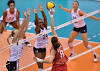 Colorado's Haleigh Washington, Jordyn Poulter named to US Olympic women's volleyball team Russia's Nataliya Goncharova (8), center, pushes the ball over USA's blockers Chiaka Ogbogu and Jordyn Poulter, left, during a match of the FIVB Women's World Cup volleyball between Russia and the US in Osaka on Sept. 27, 2019.